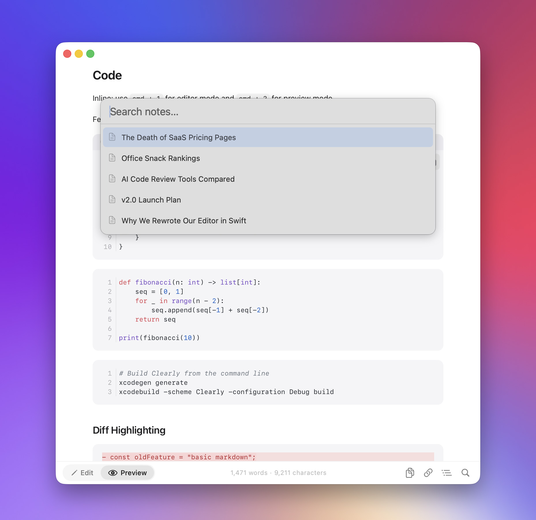 Built with SwiftUI and AppKit. Fast launch, low memory, feels right at home on your Mac.
